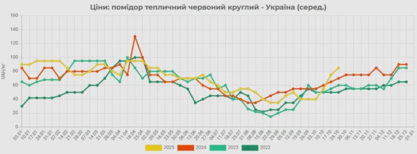 По сравнению с октябрем 2024 года, цены на тепличные помидоры выросли на 22%. Производители не исключают дальнейшего повышения стоимости при условии стабильного спроса, аргументируя это ограниченным предложением продукции с местных комбинатов.