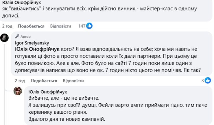 Под публикацией Смелянского снова разгорелась оживленная дискуссия, и многие комментаторы пришли к выводу, что его пост хоть и объясняет ситуацию, однако выглядит не как извинение, а как способ в очередной раз подколоть тех, кому не нравится то, что происходит вокруг УП.
