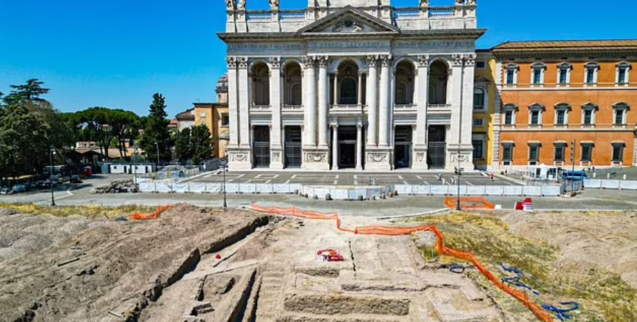 Древний дворец, окруженный оборонительными стенами, нашли на площади за пределами Латеранской базилики Святого Иоанна, датируемой IX веком. По словам археологов, стены ранее неизвестного дворца были построены из больших камней, образованных из вулканического пепла. Материал для строительства дворца, вероятно, был взят из руин других сооружений, которые ныне утрачены.
