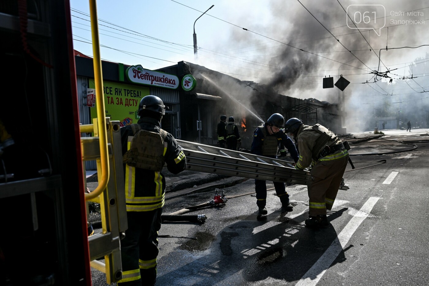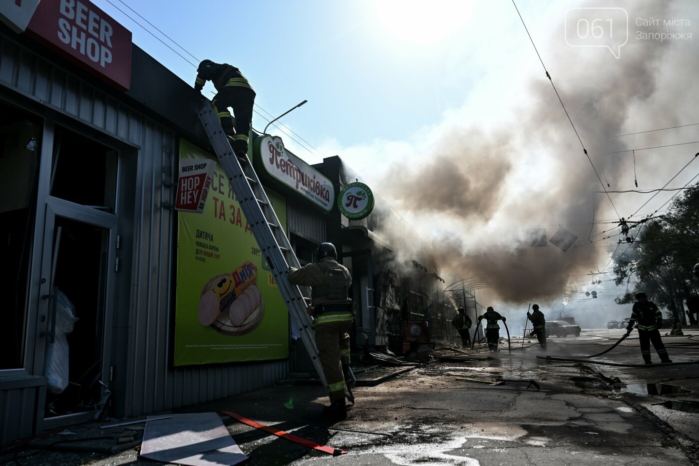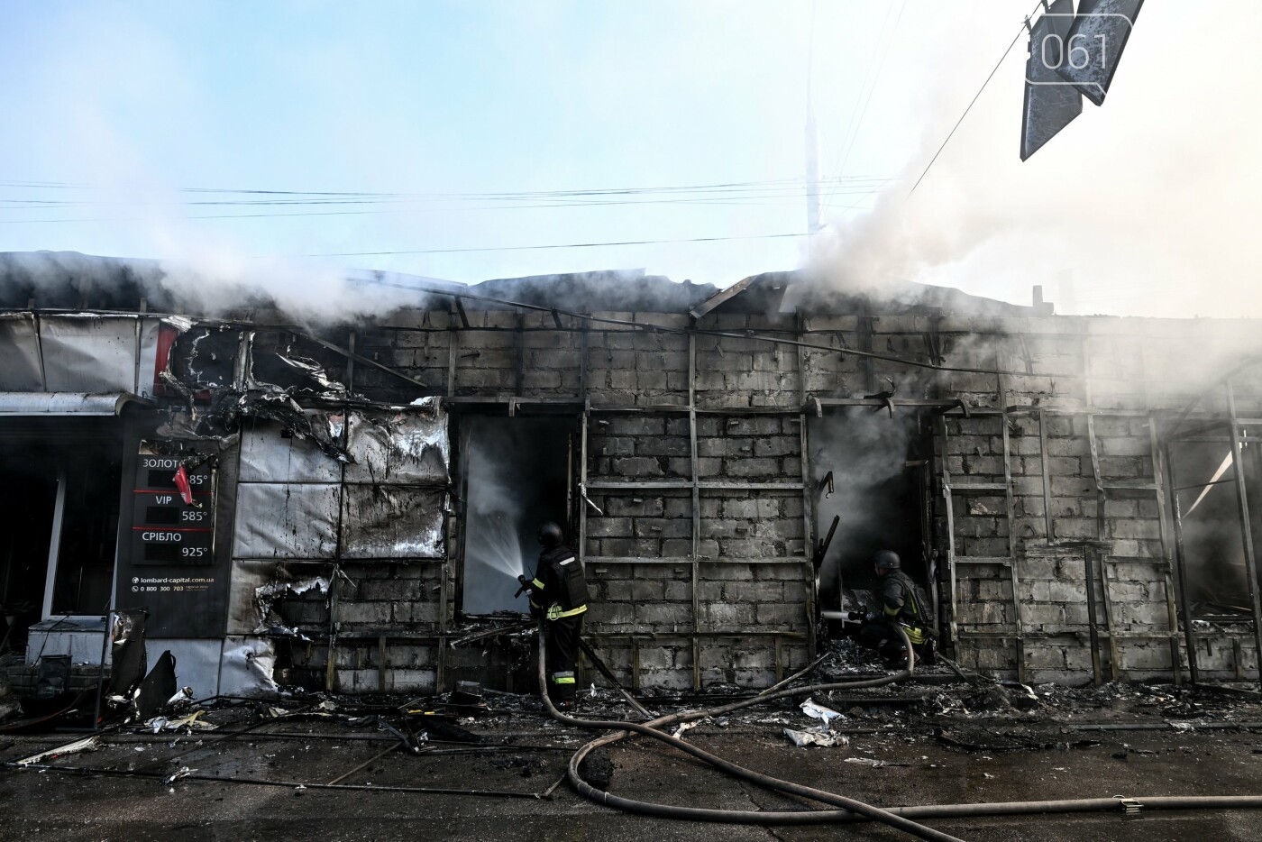 В результате попадания занялись остановка общественного транспорта, а также рядом расположенные магазины. Взрывной волной повреждено маршрутное такси, жилые дома и магазин предприятия. На месте возникли пожары. По словам заместителя начальника по реагированию на чрезвычайные ситуации 4 государственного пожарно-спасательного отряда подполковник службы гражданской защиты Олега Панасенко, огнем охвачена площадь 500 квадратных метров .