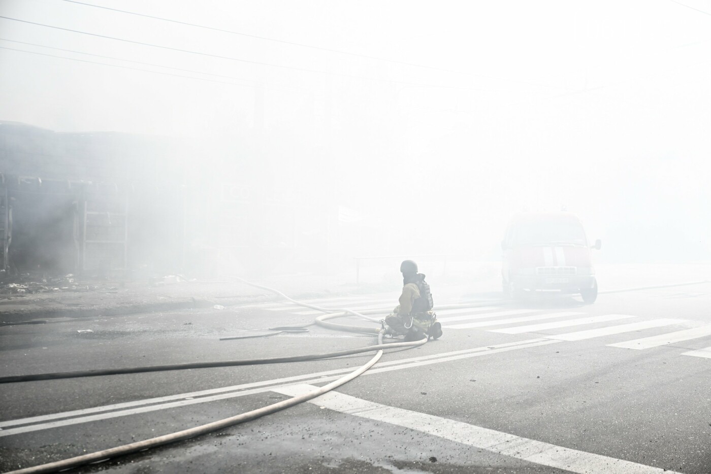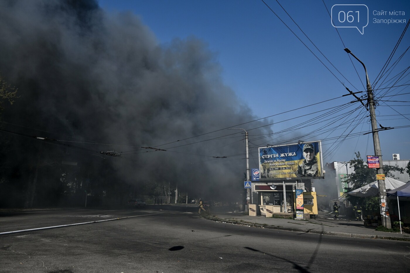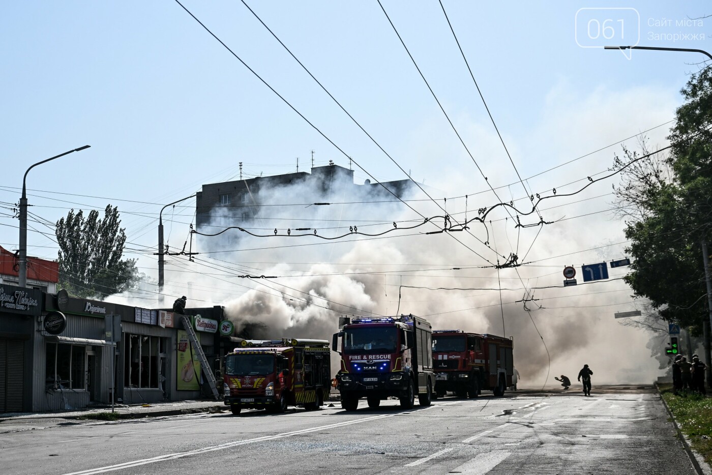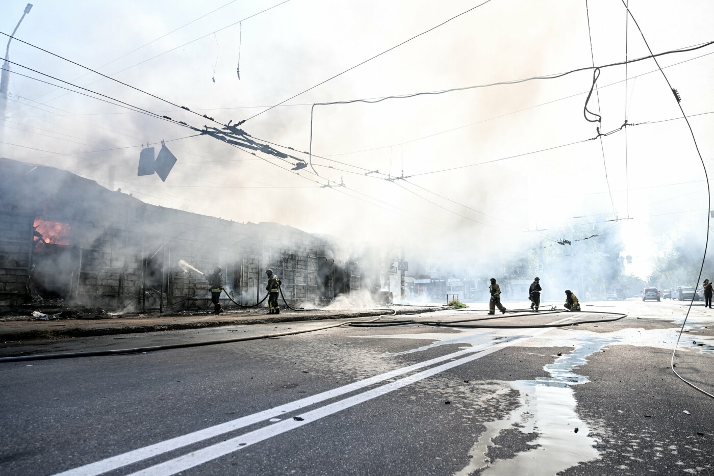 В результате попадания занялись остановка общественного транспорта, а также рядом расположенные магазины. Взрывной волной повреждено маршрутное такси, жилые дома и магазин предприятия. На месте возникли пожары. По словам заместителя начальника по реагированию на чрезвычайные ситуации 4 государственного пожарно-спасательного отряда подполковник службы гражданской защиты Олега Панасенко, огнем охвачена площадь 500 квадратных метров .