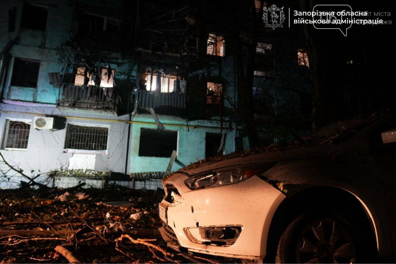 Разбитые машины и изуродованная многоэтажка: в ОВА показали последствия вражеской атаки на Запорожье