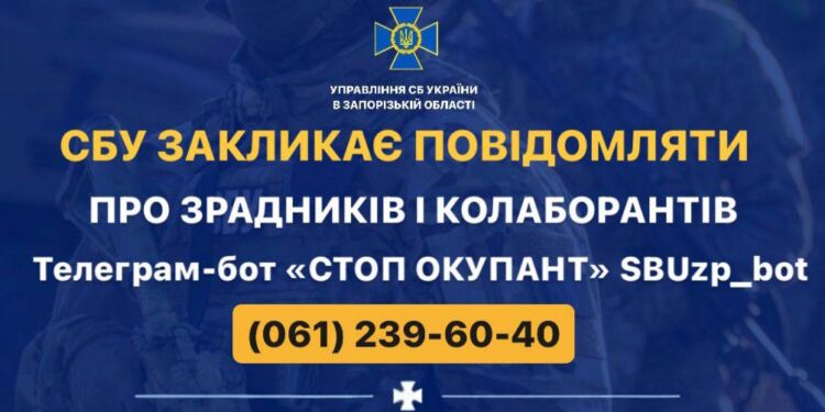 Управлінням СБ України в Запорізькій області створено телеграм-бот та працюють окремі гарячі лінії, куди ви можете повідомляти всю інформацію про зрадників і колаборантів, які допомагають ворогу під час окупації, у телефонному режимі: