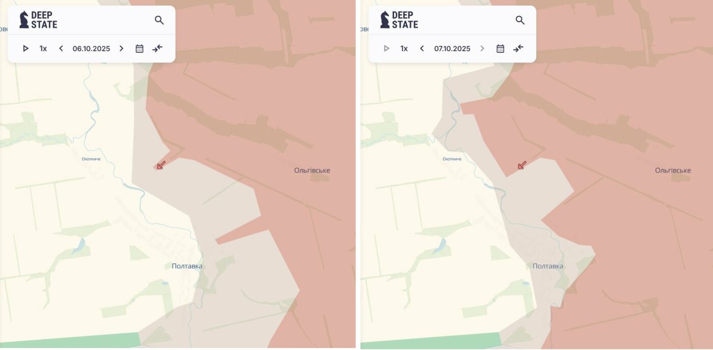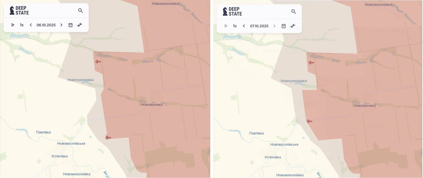Враг продолжает продвигаться на севере Запорожской области. Враг сумел захватить новые территории в районах Новоивановки, Охотничьего, Полтавки, Вишневого и Малиновки, сообщил OSINT-проект DeepState .