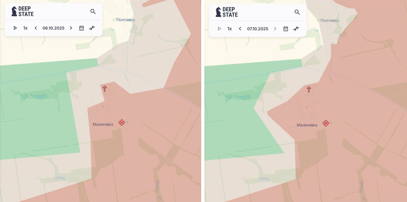 В Малиновке враг захватил юго-западную часть села. Согласно обновлению DeepState, большая часть села находится под контролем врага, а в "серой зоне" — северные и западные окрестности населенного пункта.