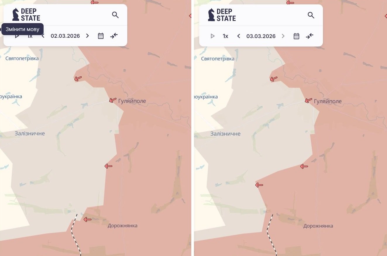 Захватчики продвинулись в районе села Дорожнянка на Гуляйпольщине. Об этом сообщил OSINT-проект DeepState 4 марта.