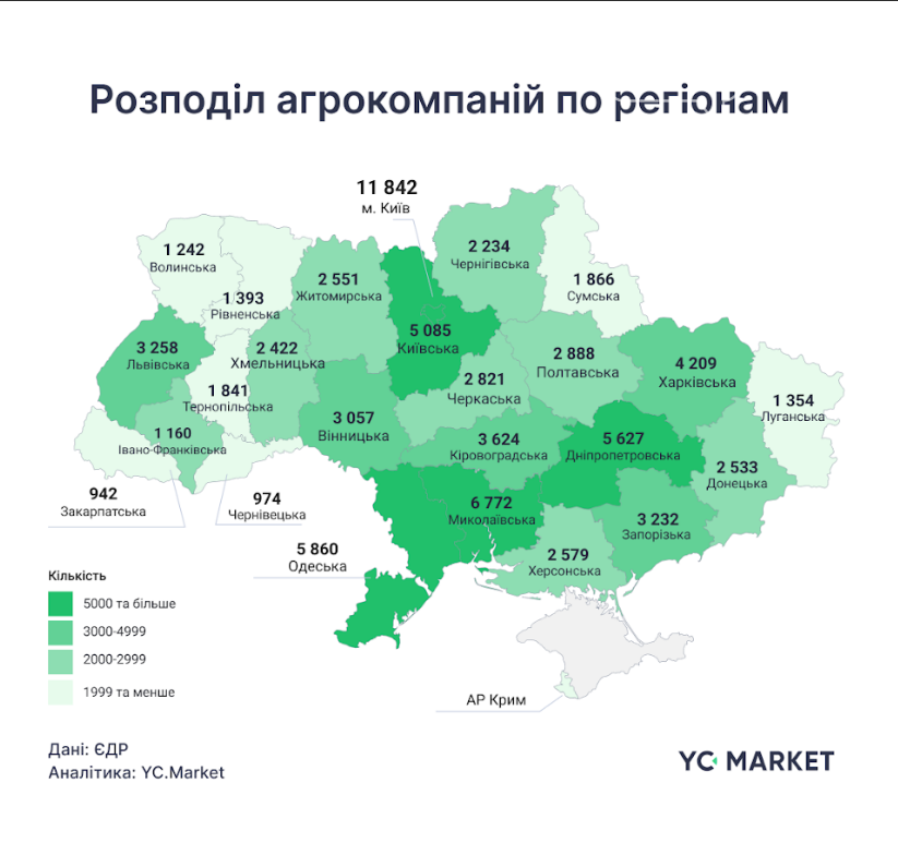 Аграрный сектор Украины показывает устойчивость даже в условиях войны. По состоянию на конец II квартала 2025 года в Украине зарегистрировано 82,9 тысяч агрокомпаний и 116,1 тысяч ФОП, работающих в сельском хозяйстве. Об этом сообщается в рамках исследования YouControl.Market.